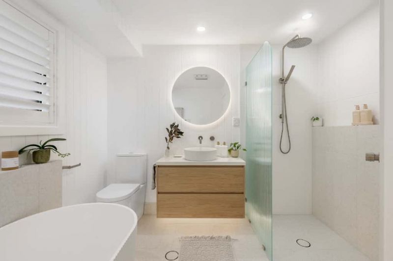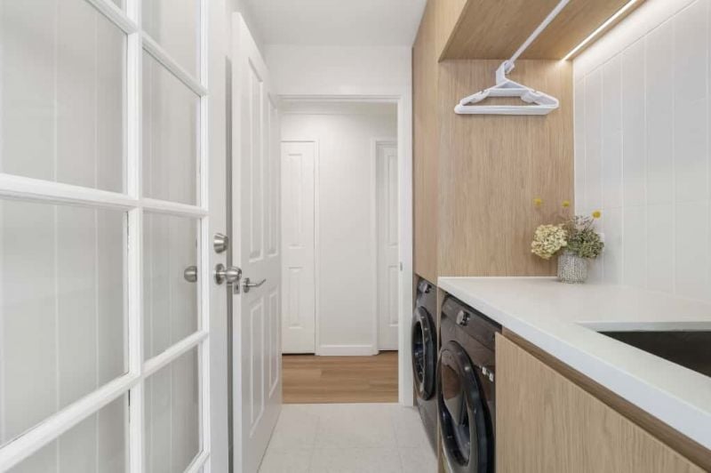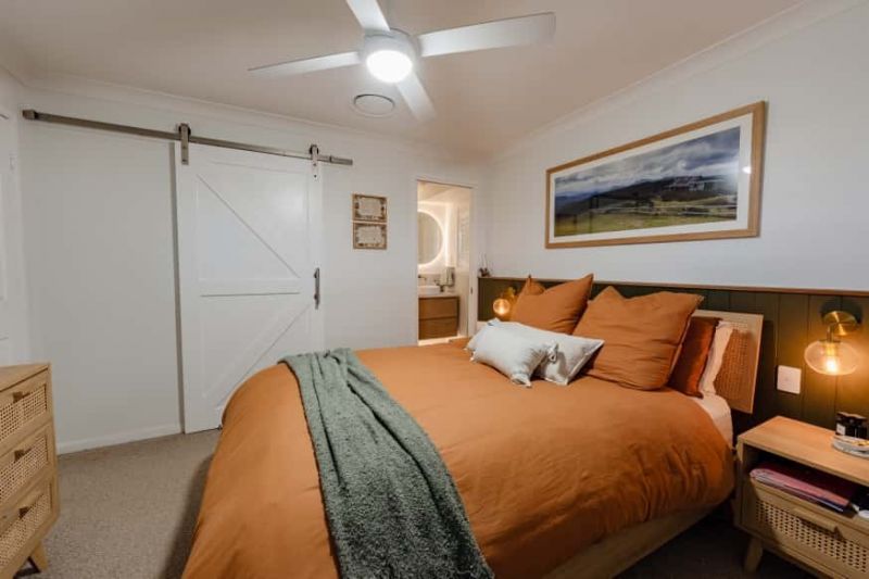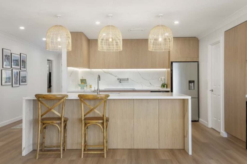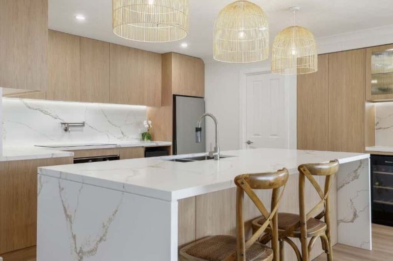 Main bathroom with bath & shower, both main and ensuite feature under floor heating. Kitchen appointed with ultra-modern appliances including a wine fridge, dishwasher & microwave space plus plenty of timber cupboards which overlooks a spacious living area.